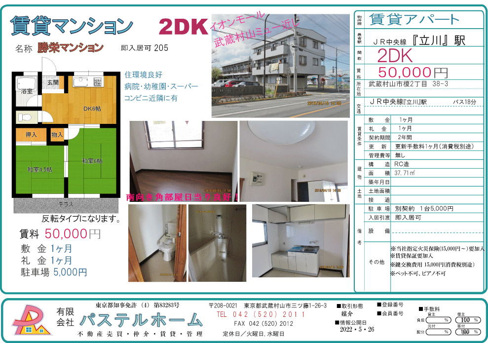 当社指定の家財保険(19,500円)・賃貸保証制度(JID50%)に加入願います。