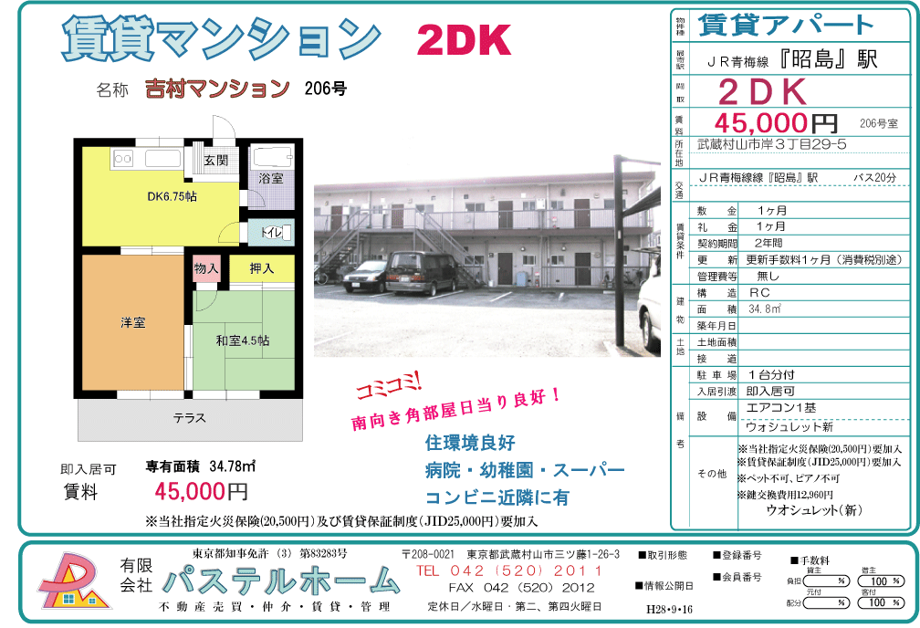 【交通】西武拝島線「西武立川」駅 バス15分 徒歩5分