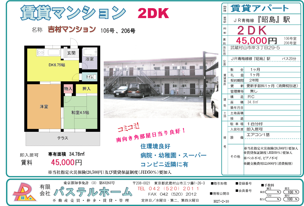 【交通】西武拝島線「西武立川」駅 バス15分 徒歩5分