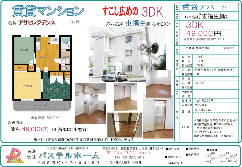 【家賃】49,000円